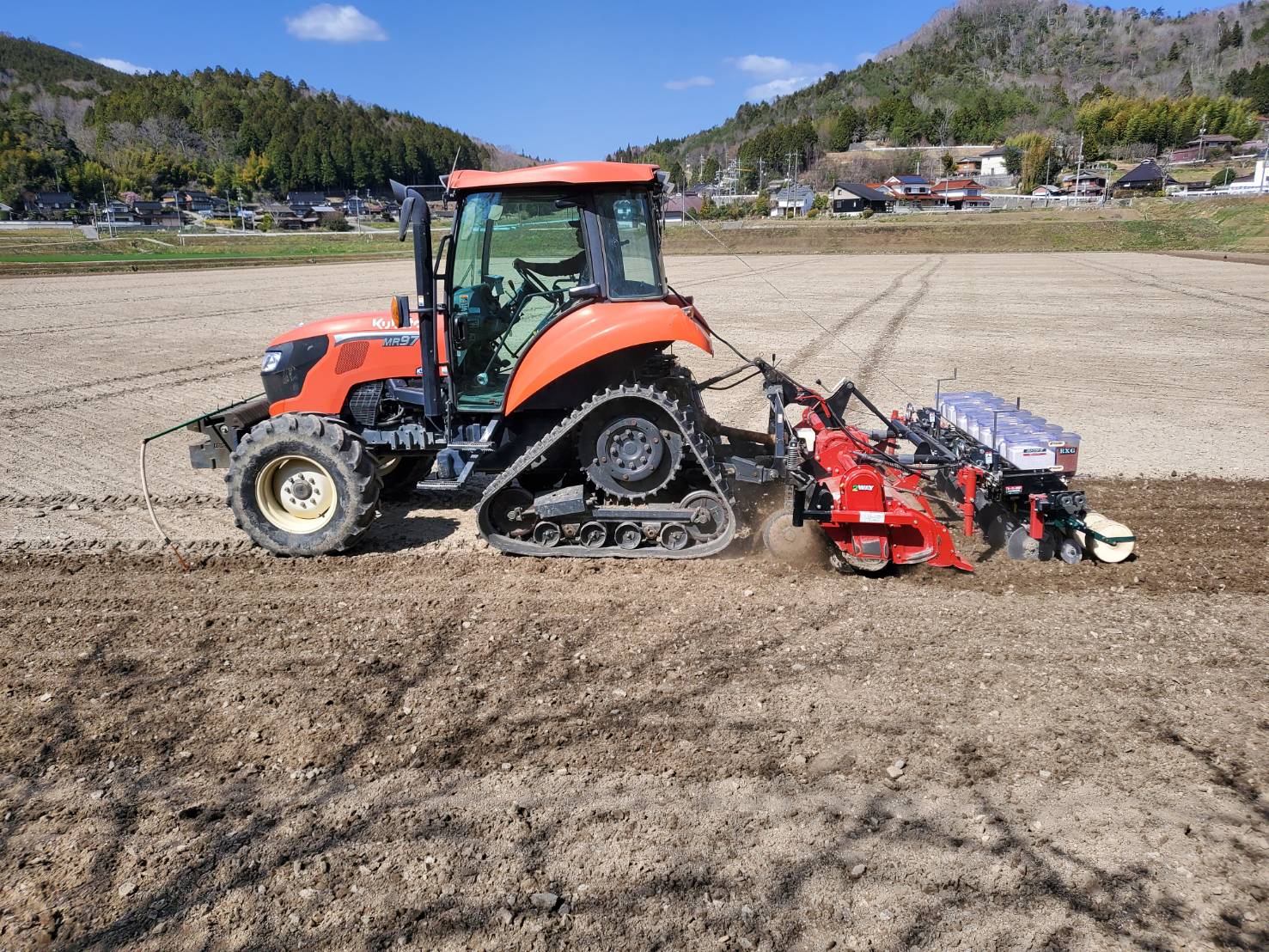 乾田直播 2022/04/04 最終更新日時 : 2022/04/04 sawayakatouchi 4月4日(月)5度目の乾田直播への挑戦です。経験を重ねる度に収量も上がってきているようですが、何といっても雑草対策が一番でタイミングよく除草剤を使いこなすことが大切なようです。今年の品種は「あきさかり」で面積は1.2㏊、収穫はコシヒカリの後になり、刈取を急ぐこともなく、充分実ってからの収穫となり秋が楽しみです。乾いた田んぼでの作業は快適で半日で作業も終了しました。 先ずは外周を3回廻って 右に見えるのはトンビ 播種機の前は2WAYロータリー 条間30㎝の7条播種 Follow me! FacebookXBlueskyHatenaCopy